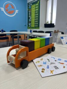 Вашій увазі дитяча розвивальна гра “Сортуємо відходи” розроблена підприємством “Львівспецкомунтранс” та виробником# дитячих іграшок “Igroteco”– це комплект, до якого входять дерев’яний сміттєвоз, кольорові контейнери, 20 фішок із видами відходів, водій, який допомагати правильно сортувати відходи.