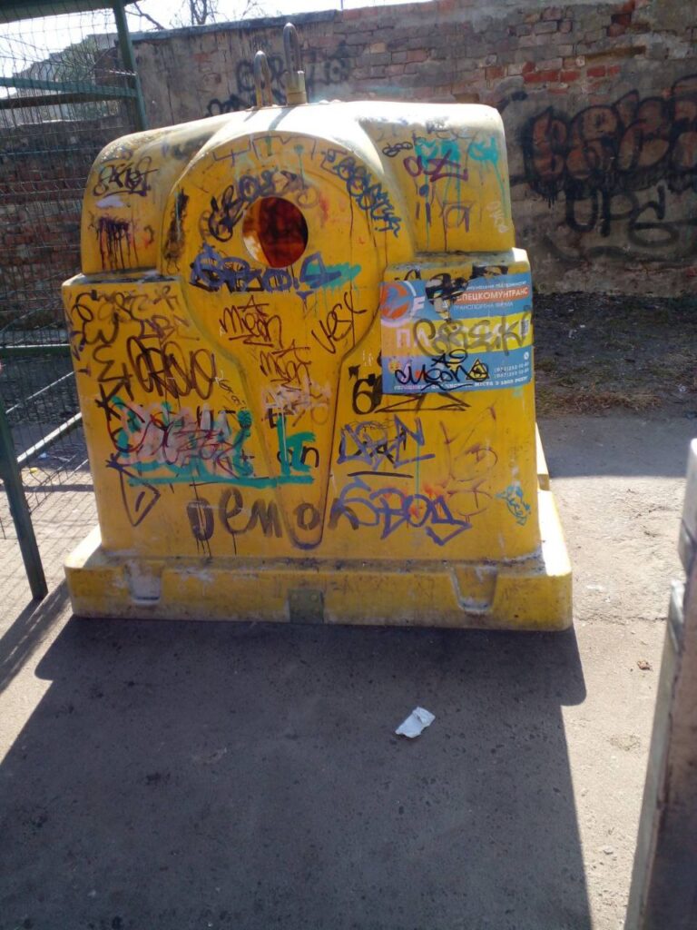 Іноді на контейнерних майданчиках з’являються написи чи малюнки. Це може здаватися дрібницею, але насправді створює відчуття безладу та псує вигляд дворів.