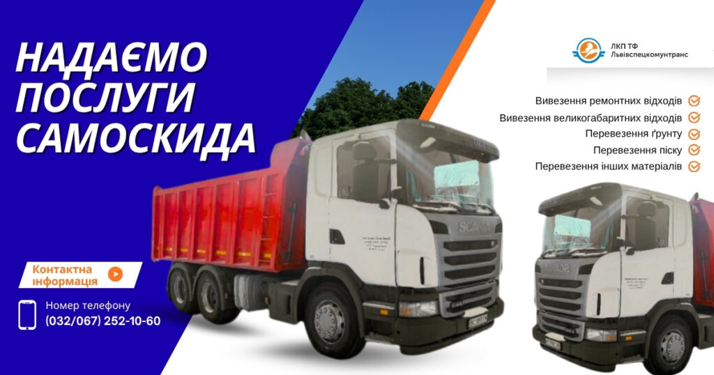 ЛКП «ТФ «Львівспецкомунтранс» надає послуги самоскидів для мешканців, установ та підприємств Львівської міської територіальної громади.